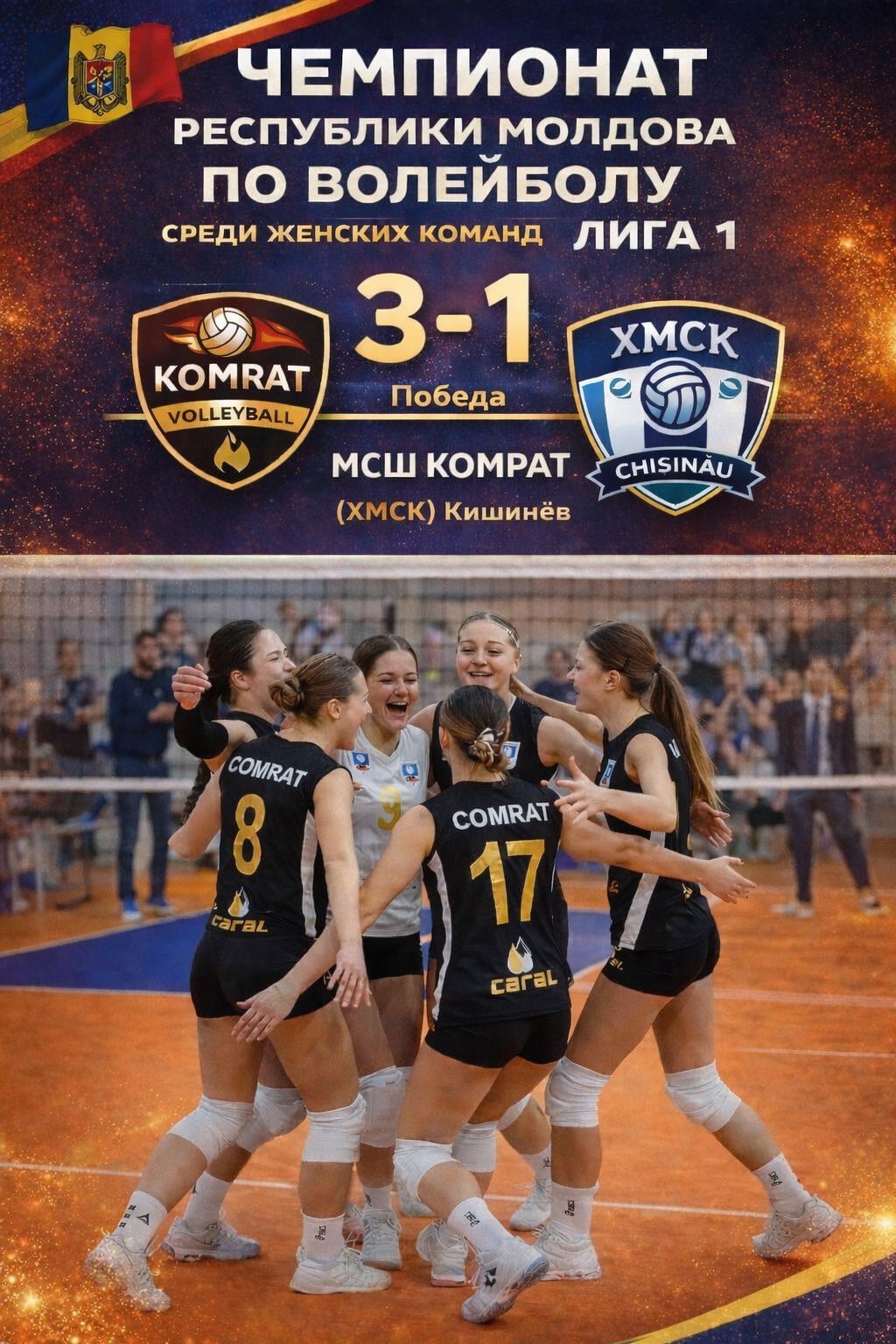 МСШ Комрат одержала победу в 5-м туре Чемпионата Молдовы по волейболу (Лига 1)10 января 2025 года состоялся 5-й тур Чемпионата Республики Молдова по волейболу среди женских команд (Лига 1). В этот день команда МСШ Комрат провела важный матч против соперниц из Кишинёва и завершила встречу уверенной победой со счётом 3:1.